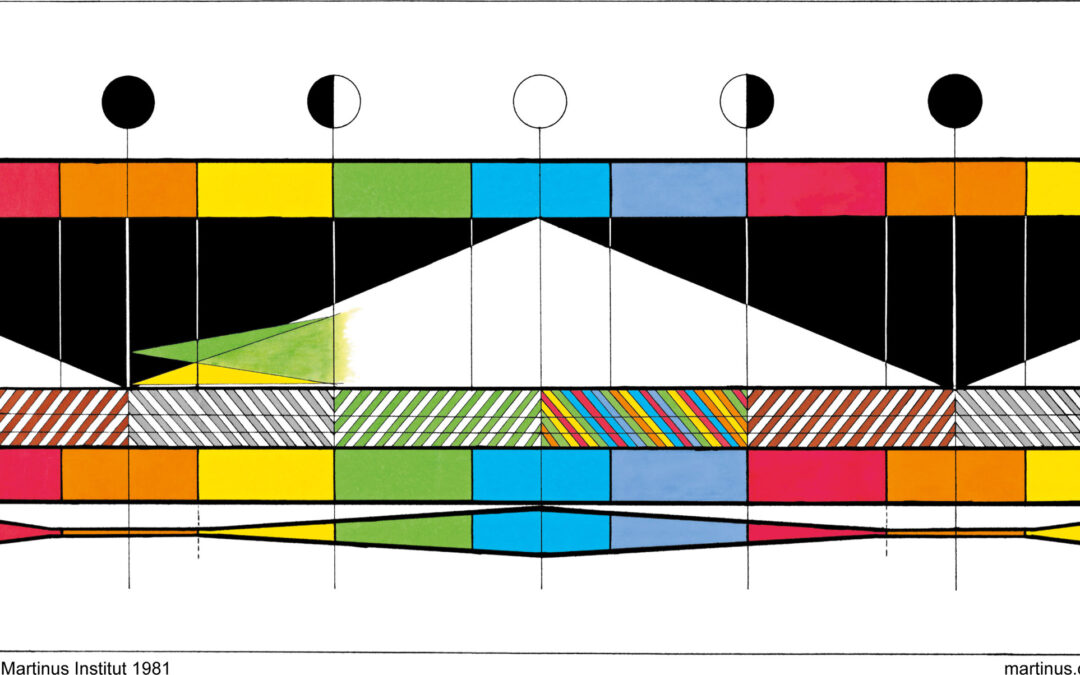- A többszínű csíkokkal jelölt mező jelöli: a nyarat, a délutánt, a férfikort, valamint az isteni világ második felét és a boldogság birodalmát.