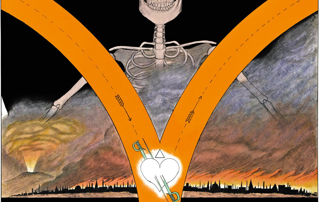 - A tűztenger a háborút és a nyomort ábrázolja.