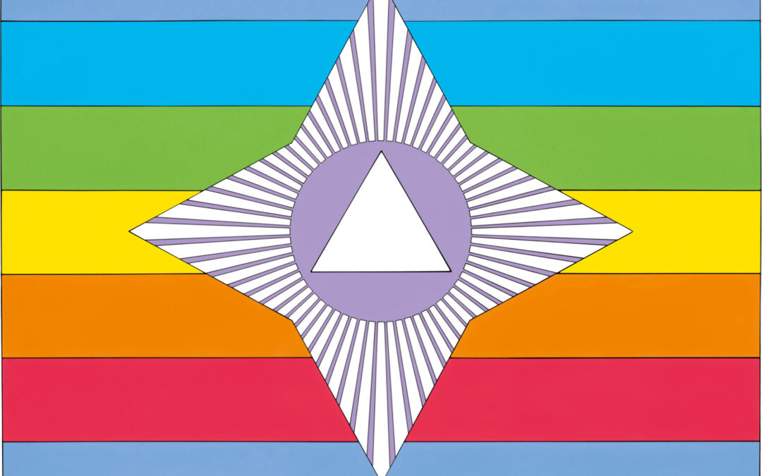 A zászló az egész világot szimbolizálja. Szerkezetében így a legmagasabb formát képviseli mindannak, ami létezik, mindannak, ami volt, és mindannak, ami lesz. Minden így kifejezésre jut ebben az egyetlen képben, amelyet ezért joggal lehet az Istenség, a bölcsesség és a szeretet szimbólumának vagy a „szent szellem” jelképének nevezni.